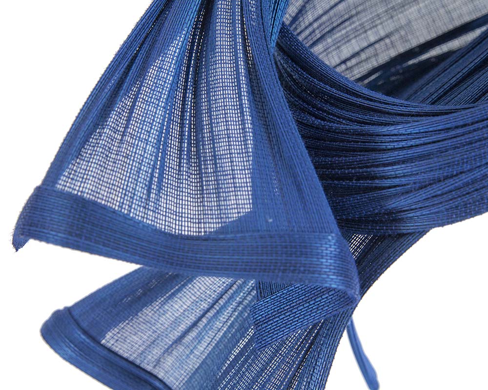 Latest Fillies Collection racing fascinator made from twists of incredible Eco-friendly royal blue jinsin fabric. Hand created by our experienced milliners in the hearts of Melbourne to make you look your best at the next Fashion of the Field!