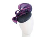 Large round navy base draped with waves of navy and fuchsia crinoline. Fillies Collection fascinators are made in Melbourne since 1963 and you can own a masterpiece from our milliners.