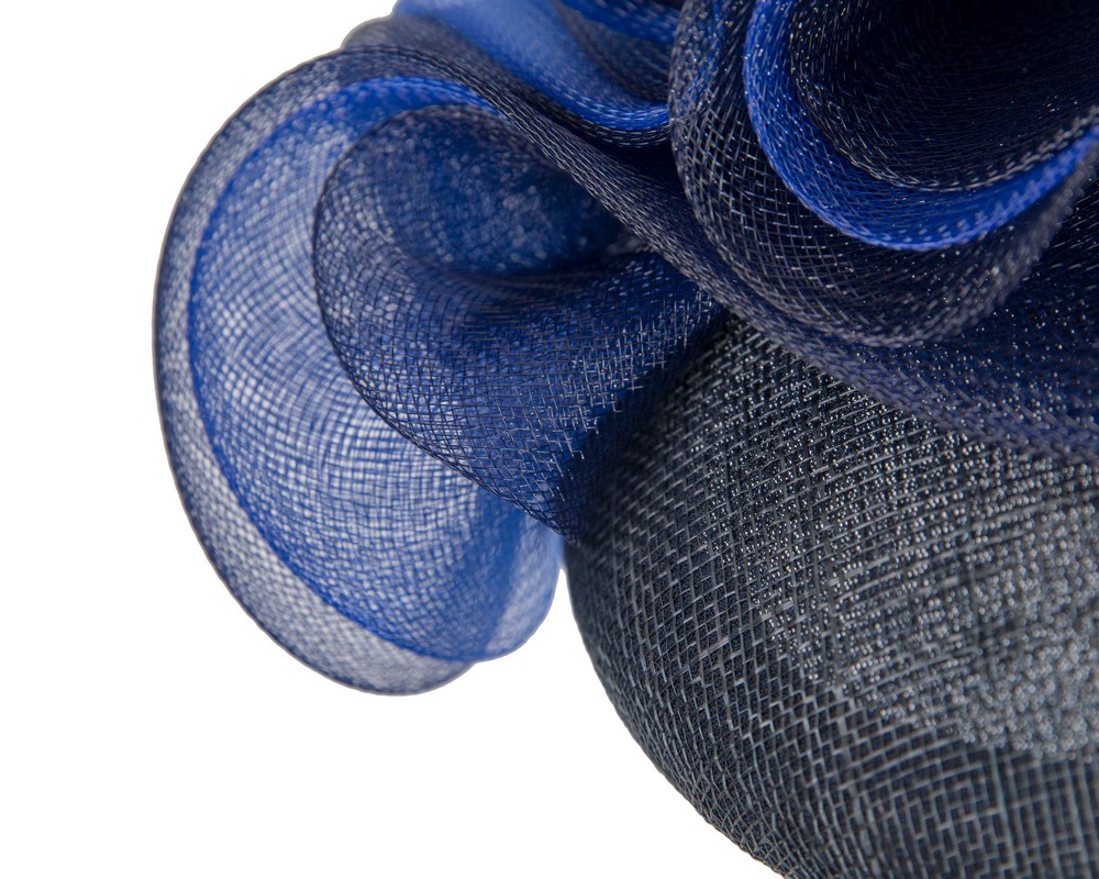 Large round navy base draped with waves of navy and royal blue crinoline. Fillies Collection fascinators are made in Melbourne since 1963 and you can own a masterpiece from our milliners.