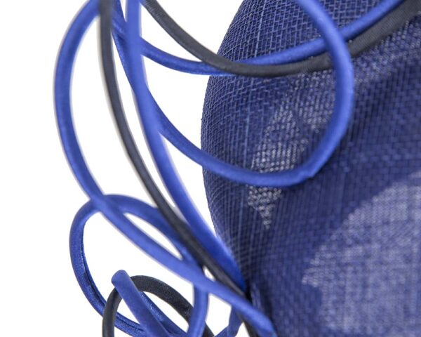 Absolutely incredible creation by Fillies Collection milliners. Royal blue pillbox base embellished with hand made loops of royal blue and navy wire. Gorgeous, unusual design that will turn heads at next spring racing meeting.