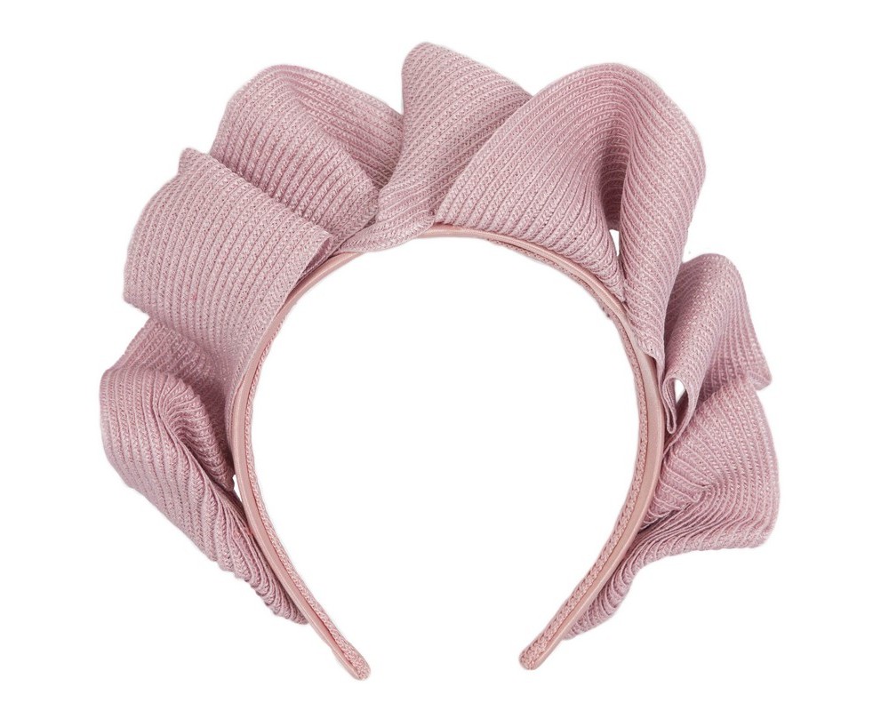 Dusty pink crown fascinator from latest Max Alexander racing collection. Waves of PU leather on the comfortable headband.